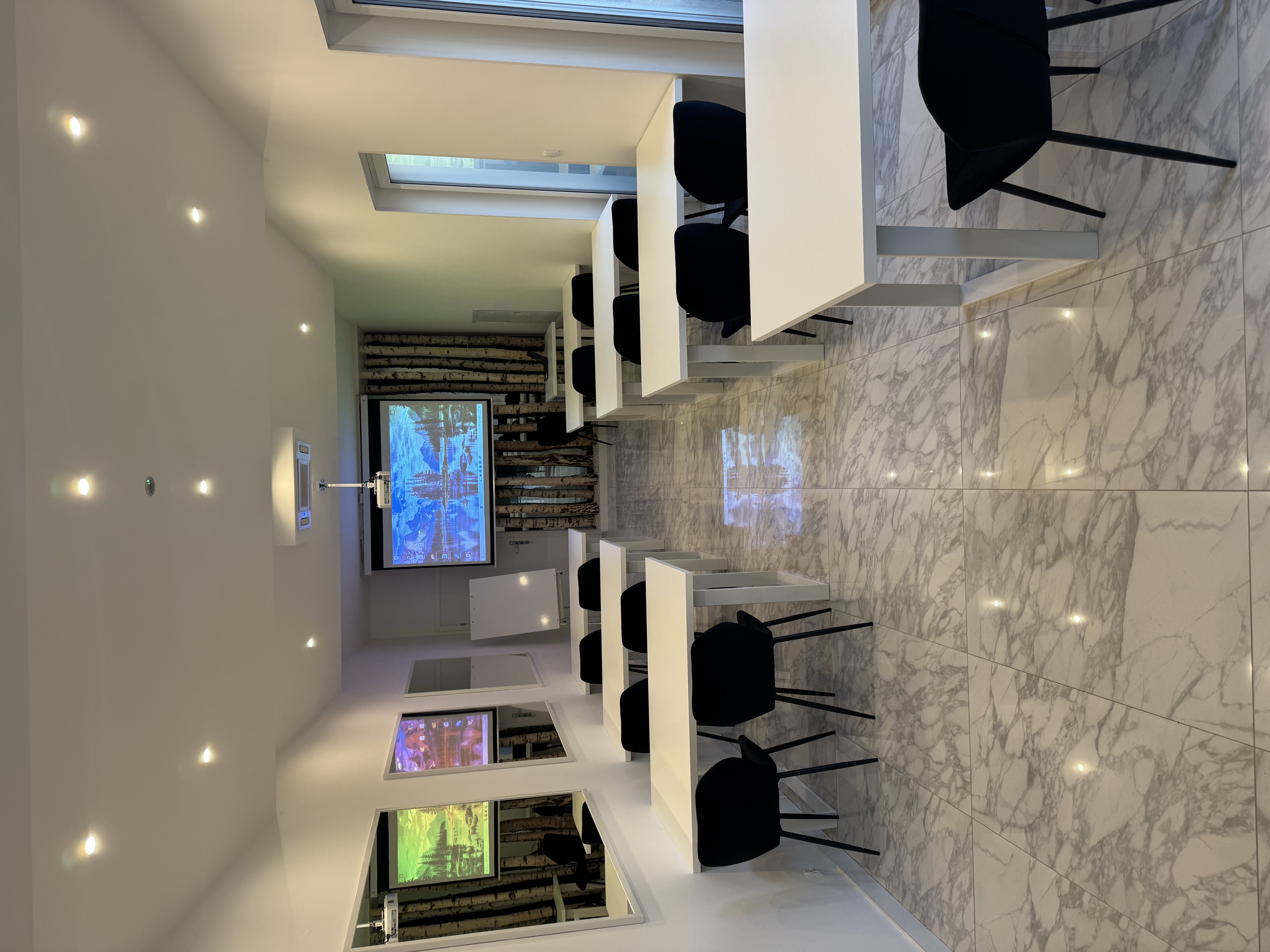 Komfortowa sala o powierzchni 45 m², przeznaczona dla grup do 25 osób. Sprawdza się podczas warsztatów, prezentacji i szkoleń w mniejszym gronie. Wyposażenie obejmuje projektor z ekranem, flipchart, klimatyzację, ściemniane oświetlenie oraz możliwość pełnego zaciemnienia. Dostępne jest również Wi-Fi.